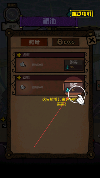 2、进入鲲池界面,按提示点击购买,消耗资源获取幼鲲,扩充鲲的数量。