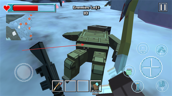 像素画风勾勒出多样战场场景,从丛林狩猎场到废弃都市据点,不同地图的地形特征鲜明,射击时的像素特效简洁有力,营造出复古又热血的战斗氛围。