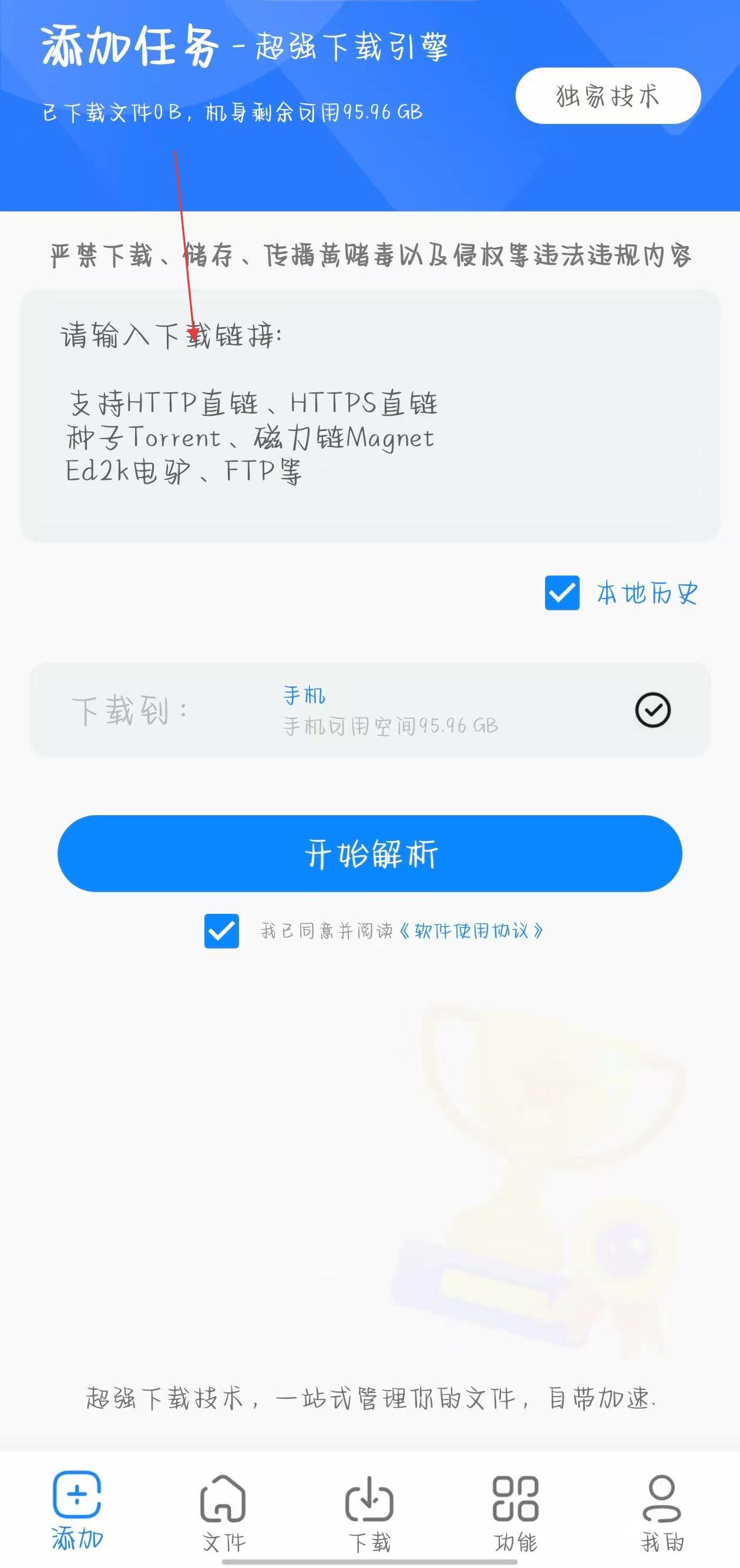 1、打开浩克下载应用,在添加任务页面的请输入下载链接输入框中,填入要下载文件的链接。