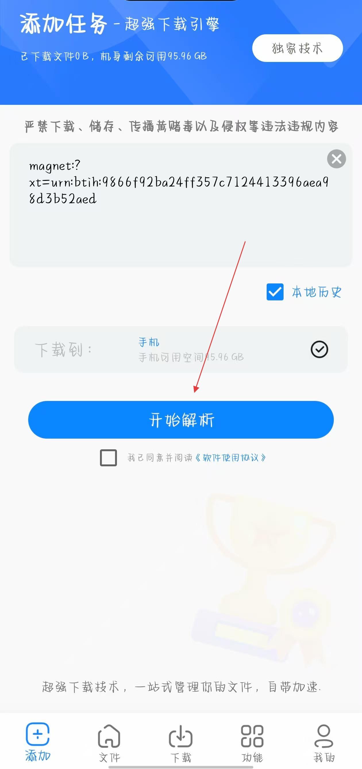2、链接输入完成后,点击开始解析按钮,等待应用对输入的下载链接进行解析。