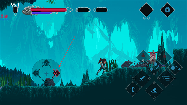 2、遇到较高的障碍物时,玩家可点击右侧脚的图标,进行灵活的跳跃。