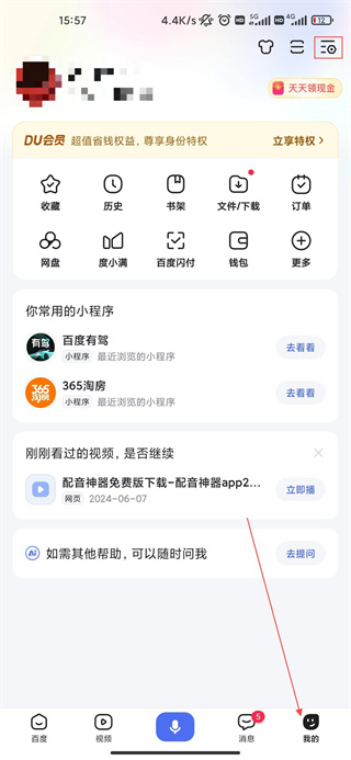 1、打开百度APP,进入到首页内点击右下角我的图标。