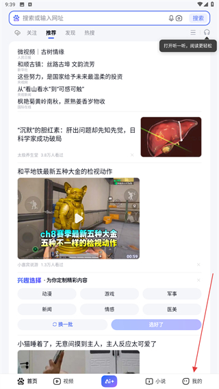 首页底部快速进入视频频道,海量明星娱乐、搞笑段子、经典剧集视频,还能拍小视频记录身边新鲜事,简单操作能拍又能看。