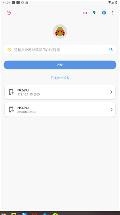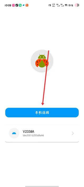 1、打开甲壳虫adb助手应用,点击本机连接按钮,选择对应设备。