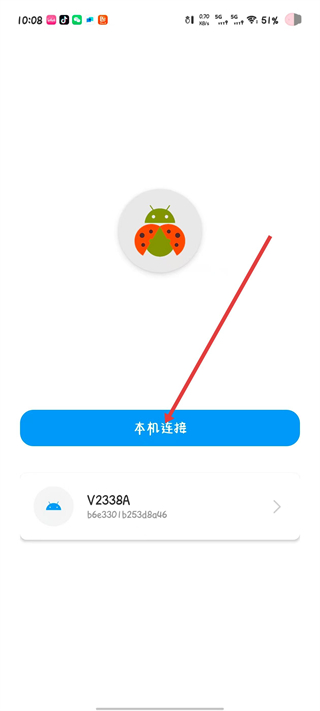 1、打开甲壳虫adb助手应用,点击本机连接按钮,选择对应设备。