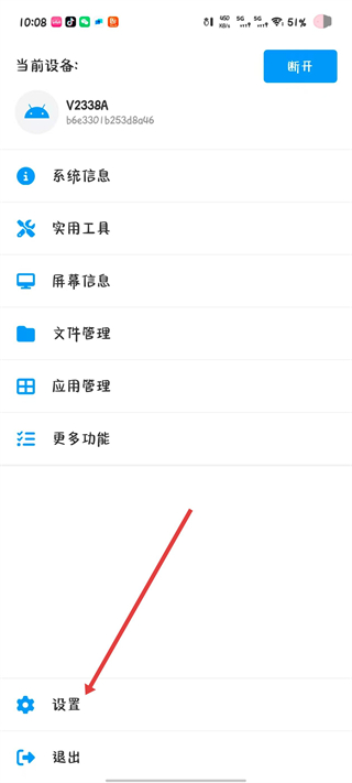3、在展开的选项中找到设置并点击,进入甲壳虫adb助手的设置界面。