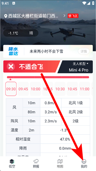 1、打开天信低空通,点击底部的我的,进入我的页面。