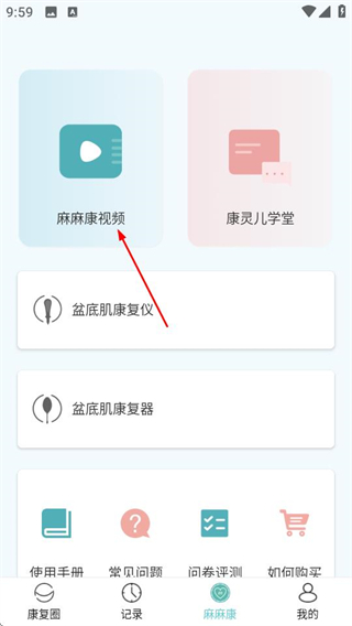 2、在麻麻康页面,点击麻麻康视频选项,进入视频列表页面。