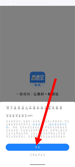 1、打开直通宝,在隐私协议政策概要弹窗中,点击同意。