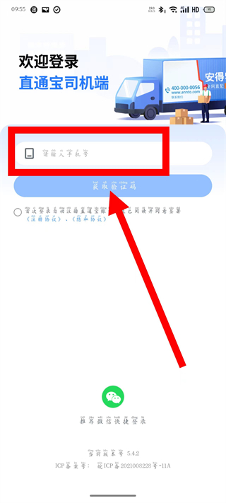 2、在欢迎登录页面,输入手机号,点击获取验证码。