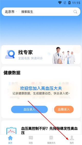 1、在高血压大夫的首页,点击底部的我的选项。