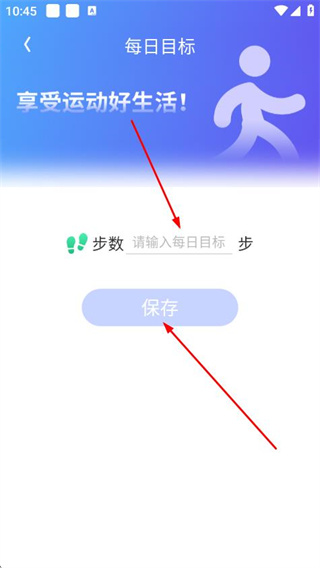 2、在步数输入框中填写新的目标步数。填写完成后,点击保存确认修改。