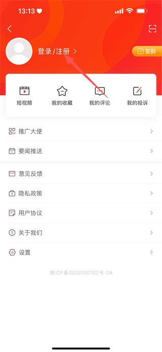 2、随后在该页面,点击登录/注册,即可进入登录页面。