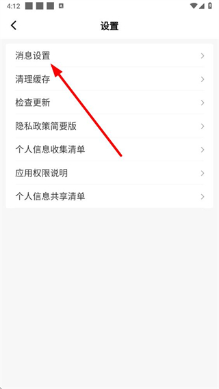 3、在设置页面点击消息设置选项,进入消息设置页面。