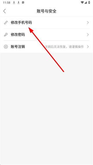 4、在账号与安全页面,点击修改手机号码选项,按照提示完成身份验证后,即可更换绑定的手机号。