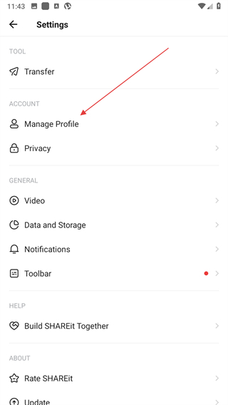 2、在Settings页面的ACCOUNT分类下,找到Manage Profile选项并点击,进入个人资料。