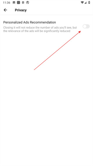 4、在隐私设置页面中,找到Personalized Ads Recommendation的开关,点击该开关。