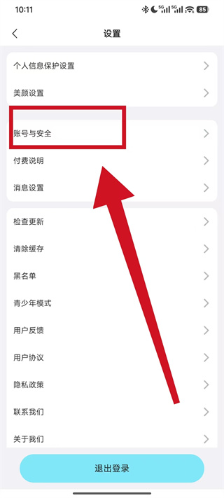 3、在设置页面选择账号与安全,进入账号与安全页面。