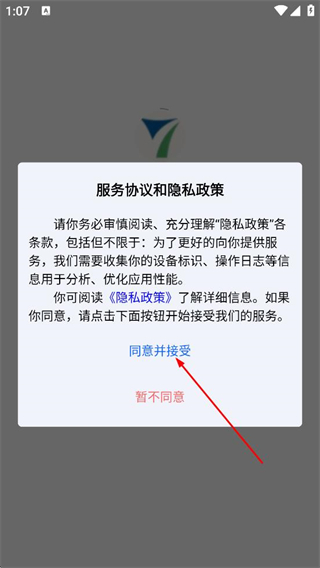 1、在服务协议和隐私政策弹窗中,点击同意,进入登录页面。