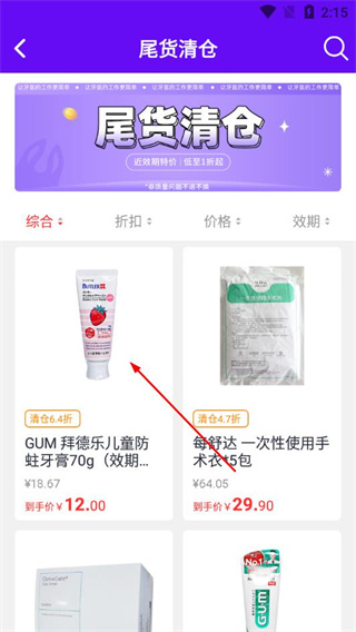 1、在牙e在线的商城首页,点击尾货清仓等功能入口,查看各类口腔相关商品。