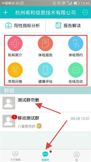 3、能通过在线互动咨询健康问题,管理个人预约、体检记录等信息,还可加入群组交流健康内容。
