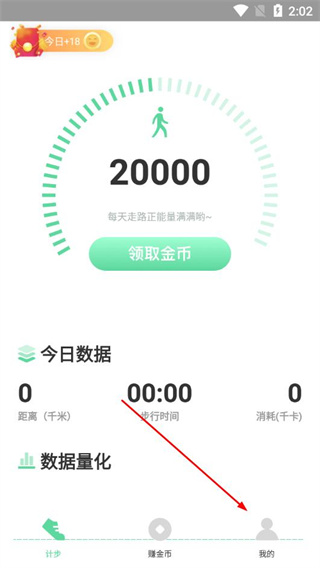 1、在步数赚的计步页面,点击底部的我的选项。