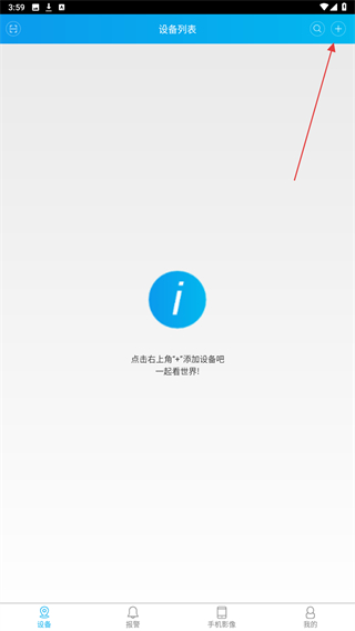 1、启动监控眼的App,进入时点击右上方+号的按钮。