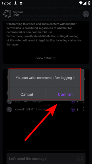3、弹出需登录后才能评论的提示框,点击Confirm,进入登录页面。