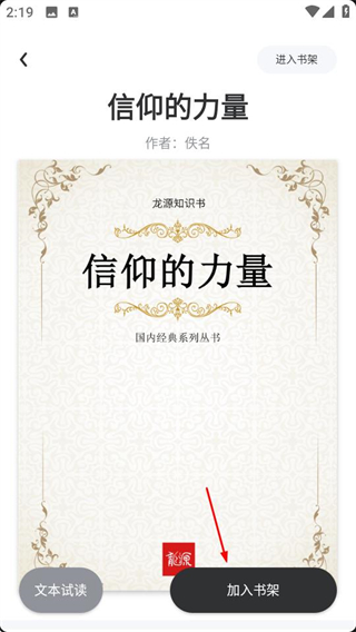 3、在图书详情页,点击加入书架按钮,将该书添加至个人书架。