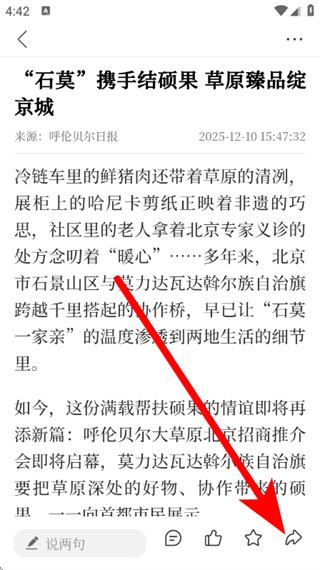 4、在资讯详情页,点击分享按钮,进入弹窗页面。