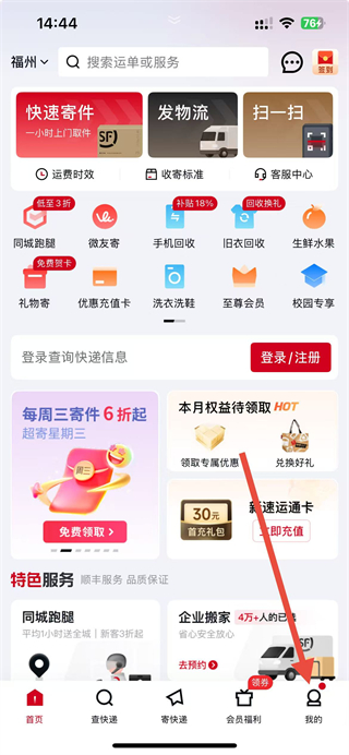 我的顺丰:查看积分、优惠券