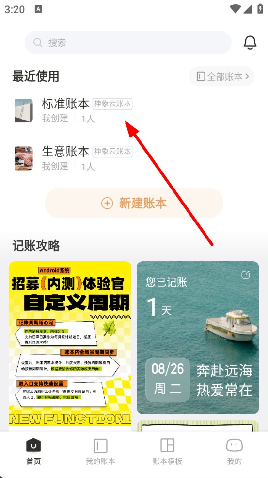 1、打开随手记APP,在首页最近使用处选择要设置固定支出的账本 ,点击进入。