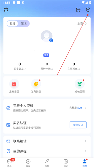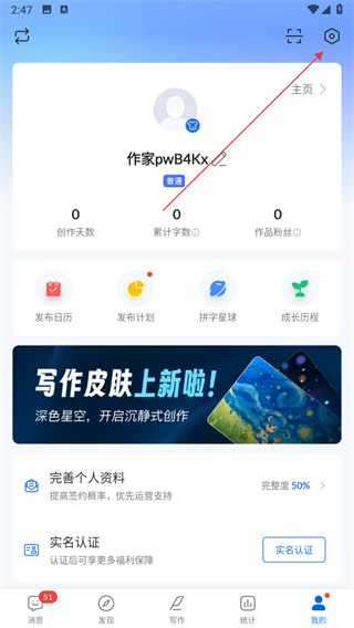 1、打开作家助手APP,点击右上角设置图标,进入设置页面。
