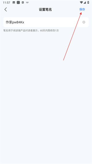 4、在设置笔名页面的输入框中输入新的笔名,点击保存按钮。