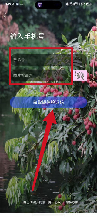 3、在页面中填写手机号、对应图片验证码,勾选相关协议后,点击获取短信验证码。