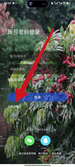 2、在登录页面点击立即注册选项,进入输入手机号页面。