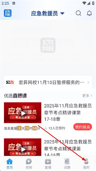 1、打开宏昇网校,点击底部导航栏我的选项。