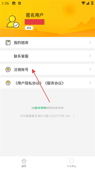 2、在个人中心页面,点击注销账号选项,触发注销确认弹窗。