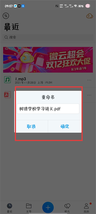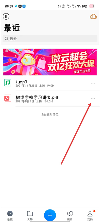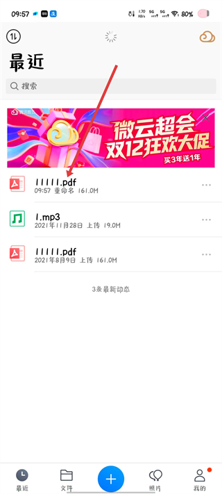 在微云APP的最近列表中,可以直观查看最近上传到微云的文件。
