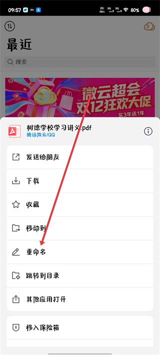 1、打开腾讯微云软件,进入最近页面,找到需要重命名的目标文件。