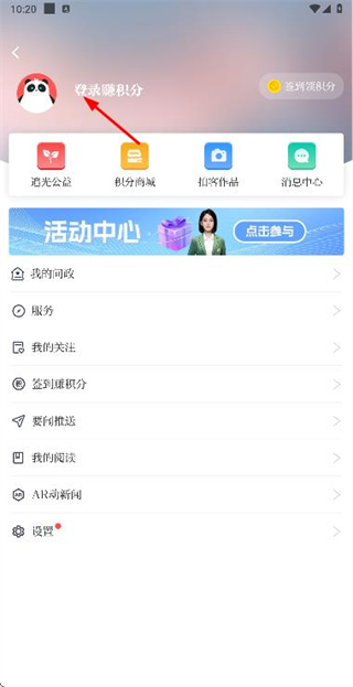 1、在首页点击右上角头像图标,进入个人中心页面。