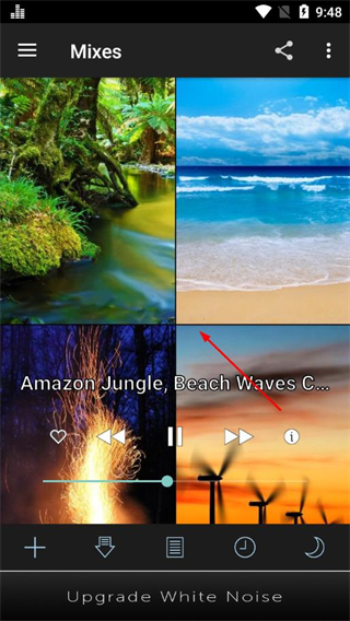 5、进入Mixes页面,点击对应音效组合的播放按钮,即可播放催眠音效。