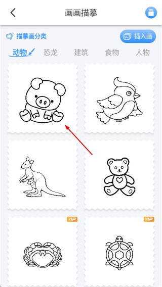 2、在描摹画分类页面,选择目标图案,进入该图案的描摹界面。