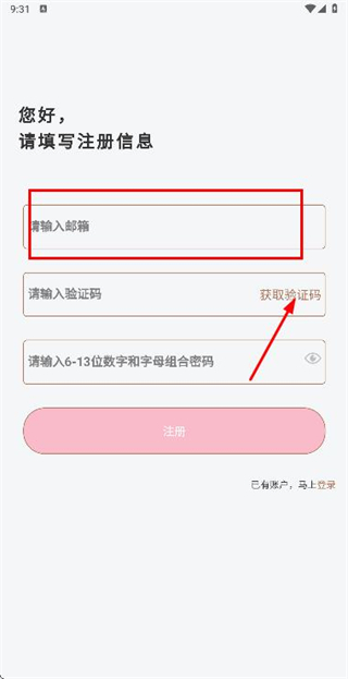 2、在注册账号页面填写邮箱后,点击发送验证码。