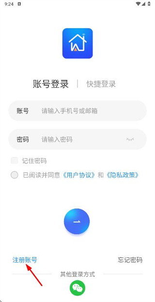 1、在登录页面点击注册账号选项,进入注册账号页面。