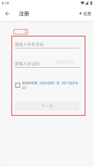 2、在注册页面,填写信息,勾选协议后点击下一步。