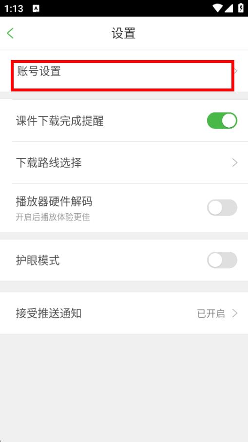 2、在设置页面里,点击账号设置选项进入账号设置界面。