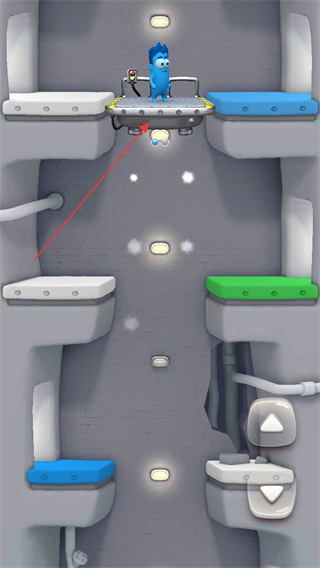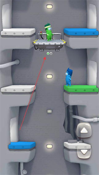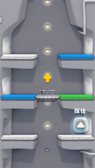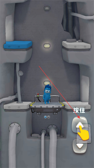 1、按住界面右侧按住标识的方向按钮,控制电梯移动,让蓝色角色随电梯升降。