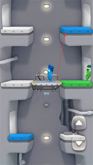 3、继续操控电梯升降,对接上方蓝色平台,让蓝色角色向目标区域推进。