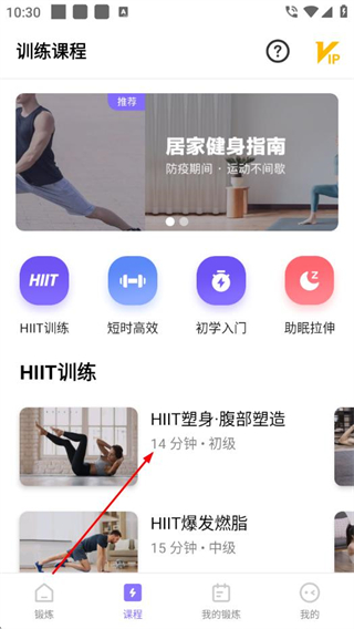 1、在运动健身速成fit的课程页面,选择目标训练课程。